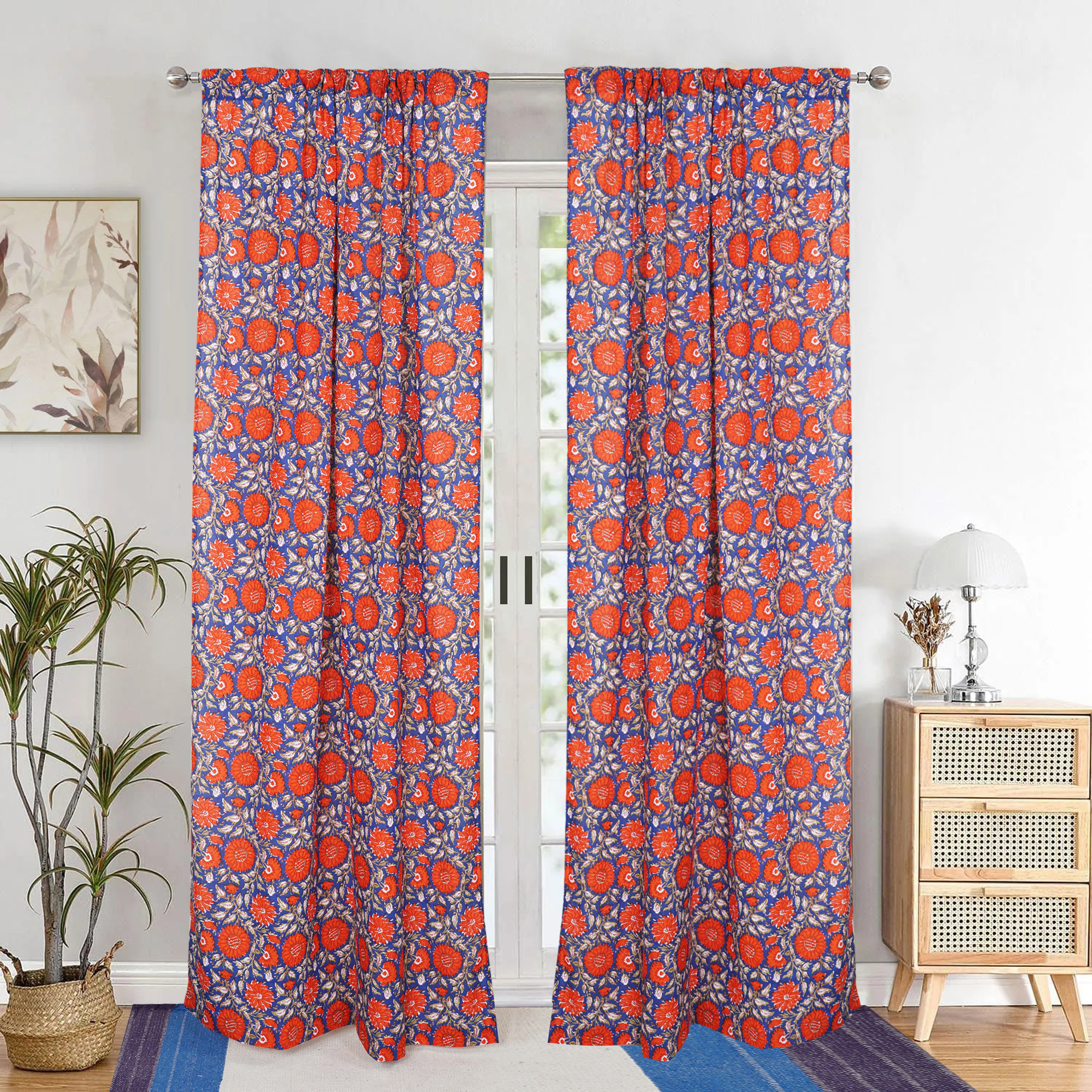 Flower Print Curtain, 2 Panel Curtain, Bohemian Countryside Style Drapery, Curtains for Living Room and Bedroom, Customize Size Curtain