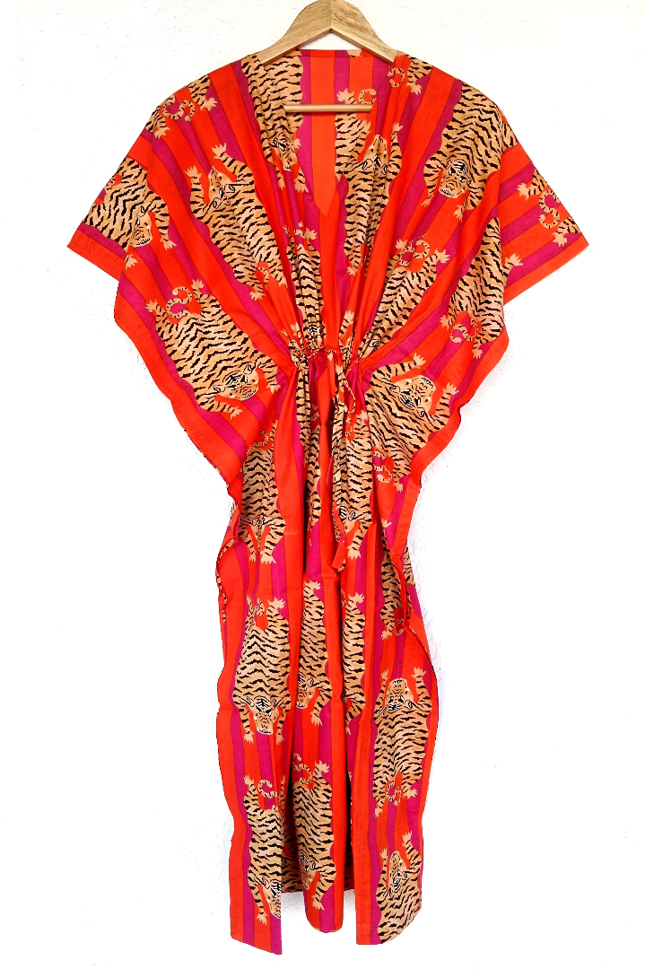 Tiger Print Kaftan, Bikini Tunic, Beach Cover Up Long Caftan For to be Moms, Bridesmaid Kaftan, Cotton Kaftan, Indian Maxi Sleepwear Dress