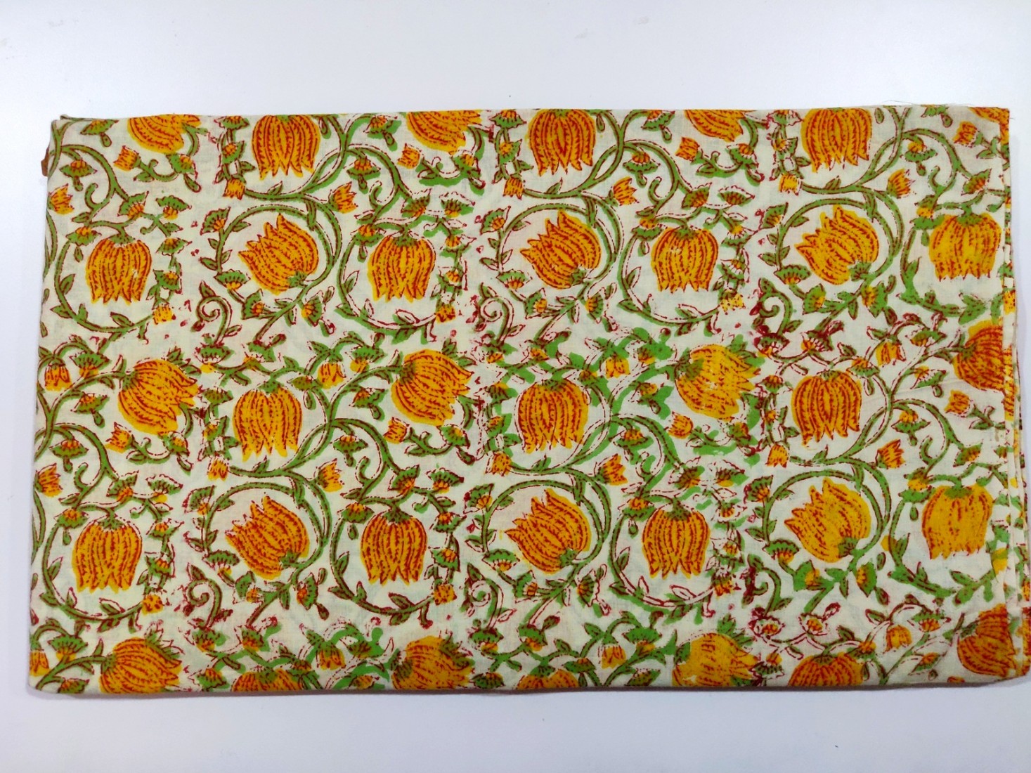 Hand Block Print Fabric. These fabrics are prepared for printing through a natural bleaching process and printed using traditional natural dye recipes. This is 100% cotton fabric printed using vegetable dyes. The beautiful art of block Printing employs wooden or metal blocks to print designs and patterns on fabric, by hand. What makes block Printing unique is that the design has to be created by the artist before the Printing begins. It is carved onto the block by hand. The carved block is dipped into the required color. The fabric is hand block printed by artisans of Jaipur, Rajasthan in India. You can use this fabric to make dresses, tops, Crafting, Drapery, Home Décor, Outdoor, Quilting, Sewing, General, Upholstery etc. Width : 44 inches. Hand Feel: It is the soft lightweight cotton Actual colors may vary a little different from those shown due to the nature of photographing and monitor color settings.