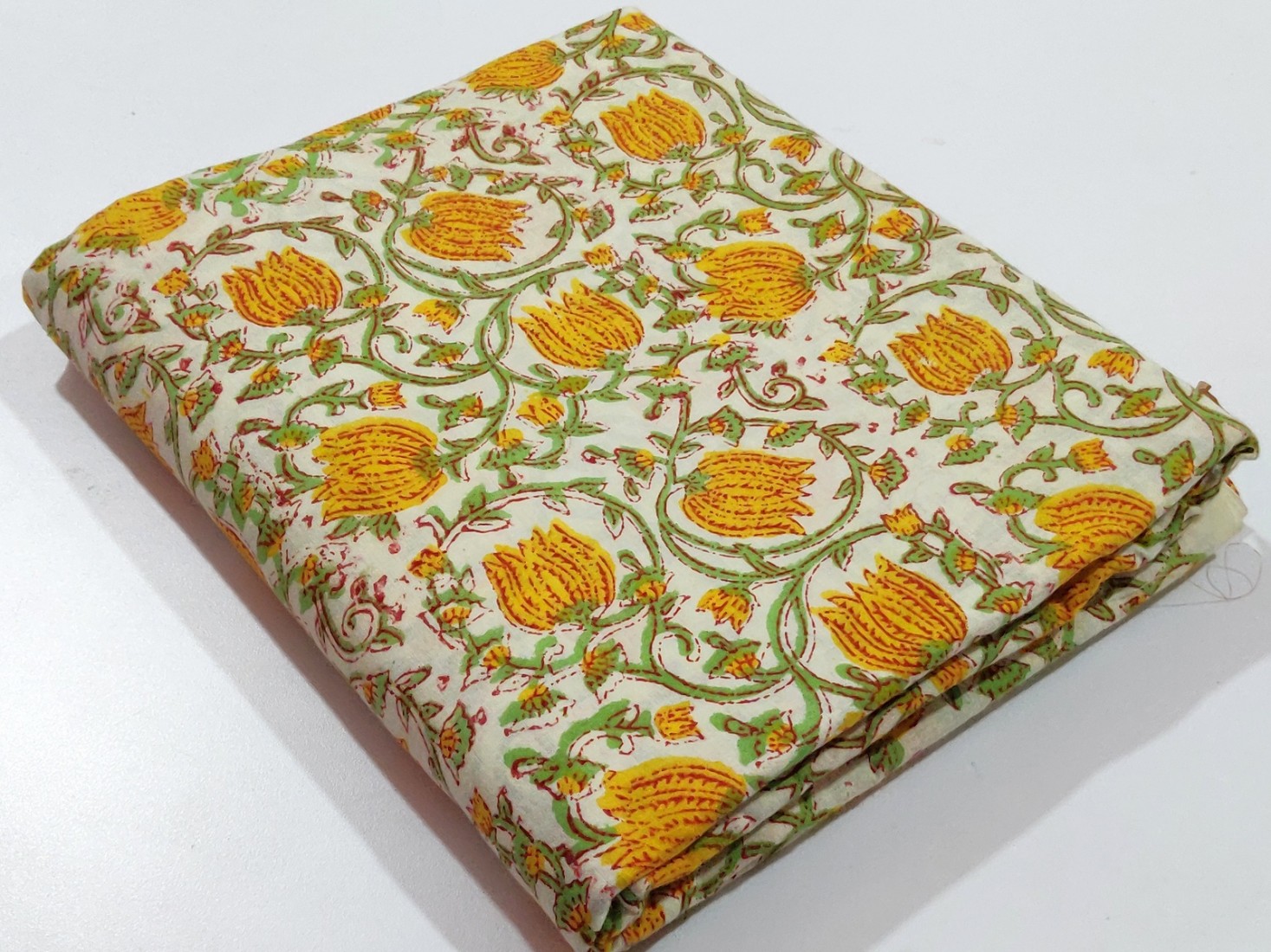 Block Print Cotton Fabric by The Yard, Indian Print Fabric Cloth for Summer Dress, Kurti, Cushion, Sofa Cover, Scarf