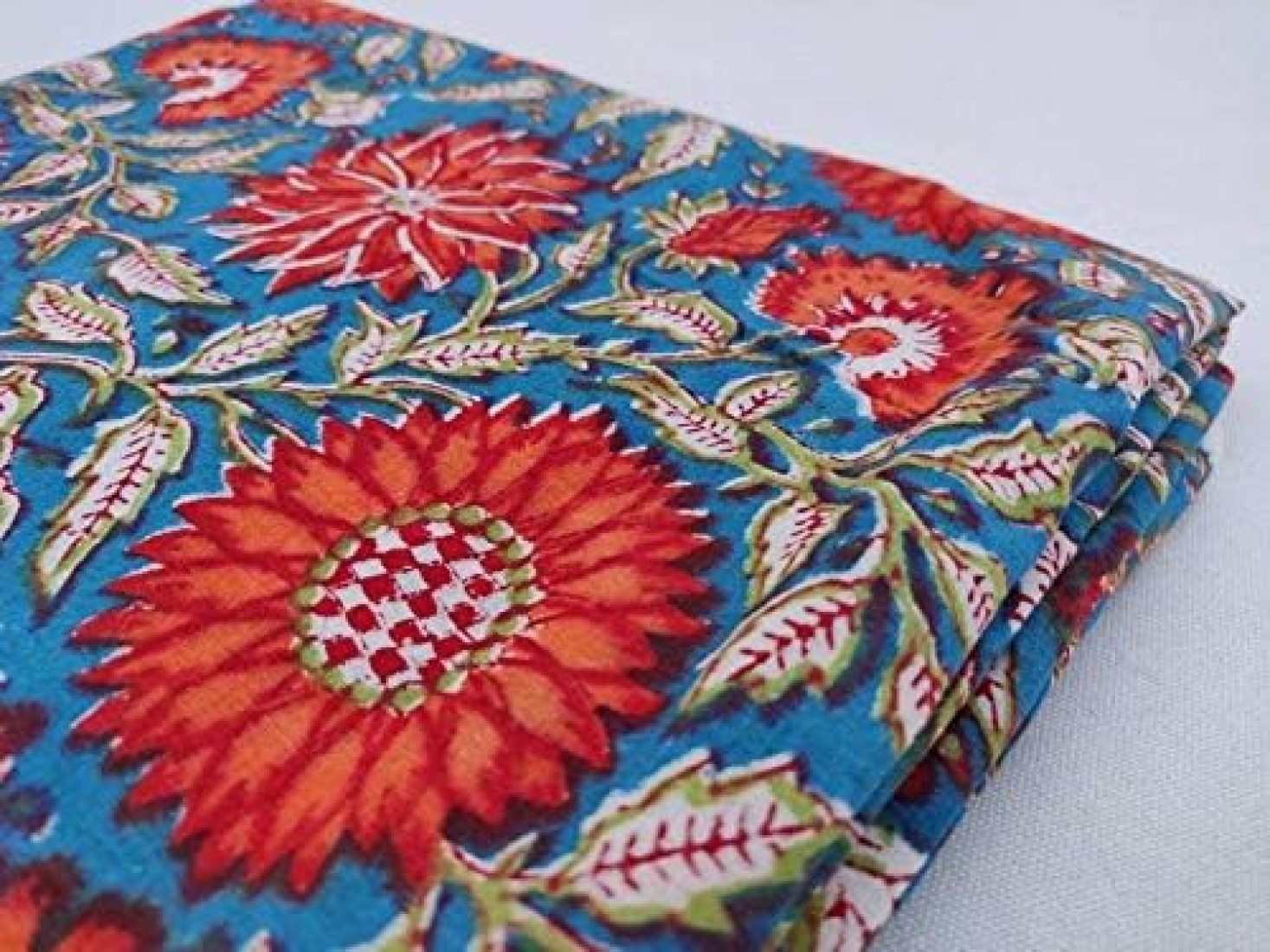 Home / Cotton Printed Fabric by The Yard, Indian Print Fabric Cloth for Summer Dress, Kurti, Cushion, Sofa Cover, Scarf 3 yards